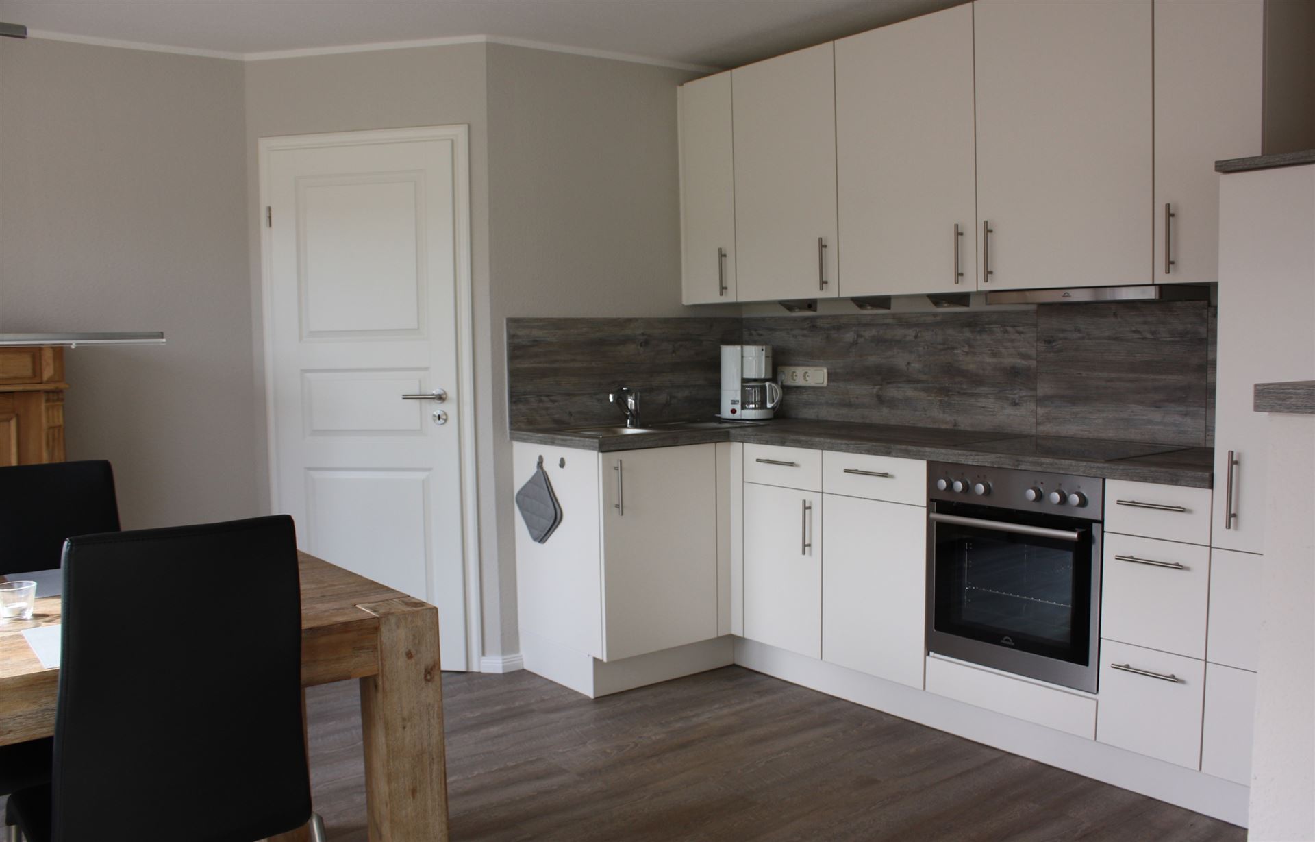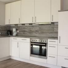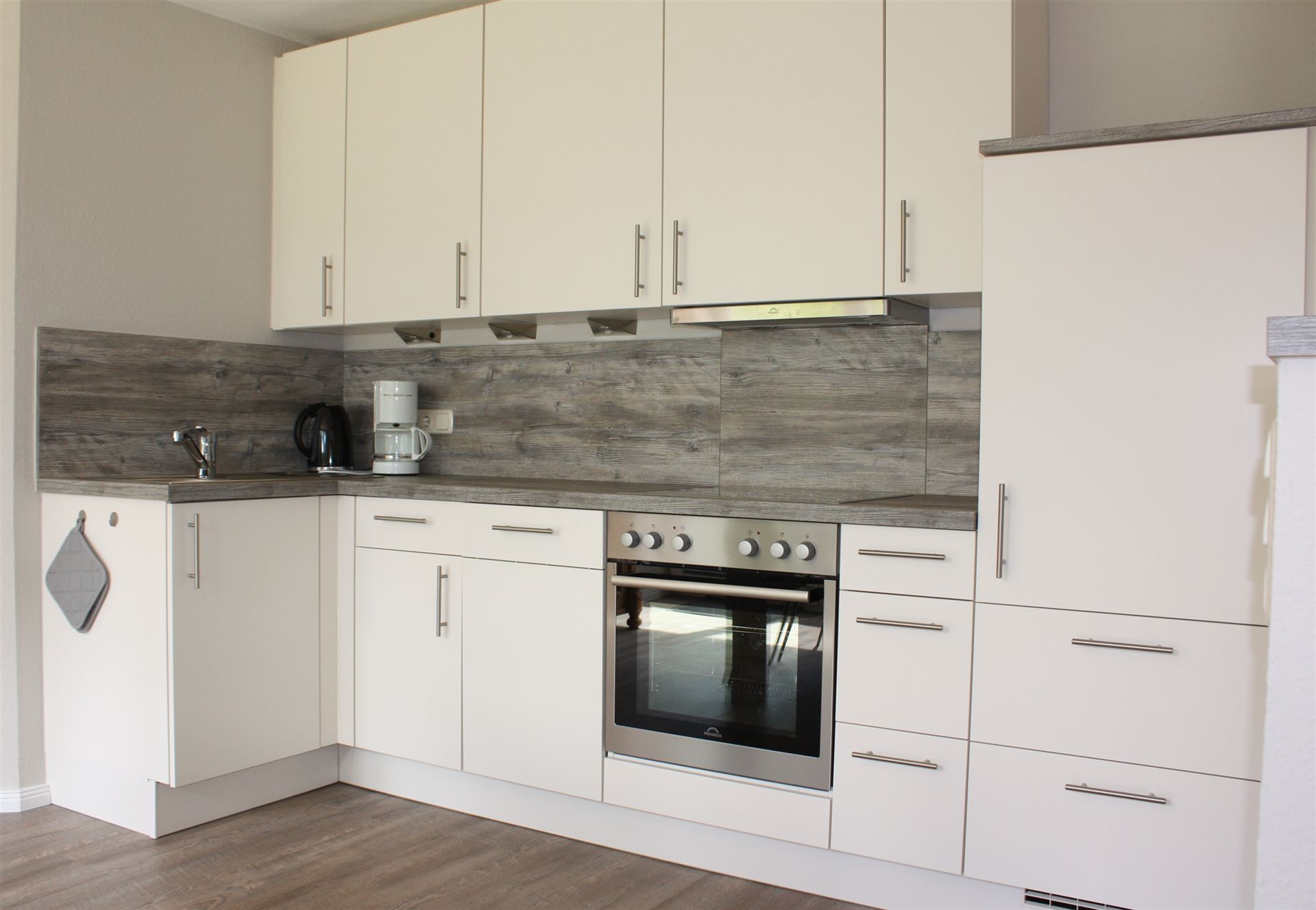 Küche mit Ceranfeld, Backofen und Geschirrspüler