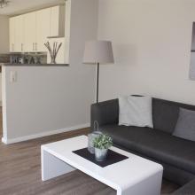 Im Interieur der Wohnung überzeugen hochwertige Materialien, Großzügigkeit und ein puristisch-modernes Ambiente. Der strahlend helle Wohn- und Essbereich mit der offenen Küche führt auf die großzügige Terrasse. Die Schlafräume – klare Linien, Modernität gepaart mit viel Behaglichkeit.
