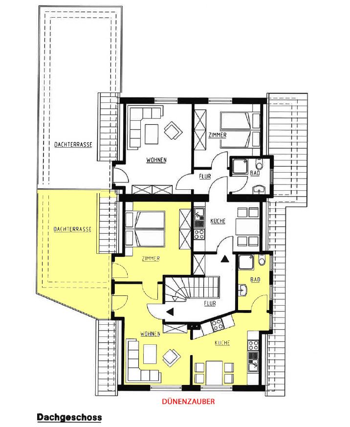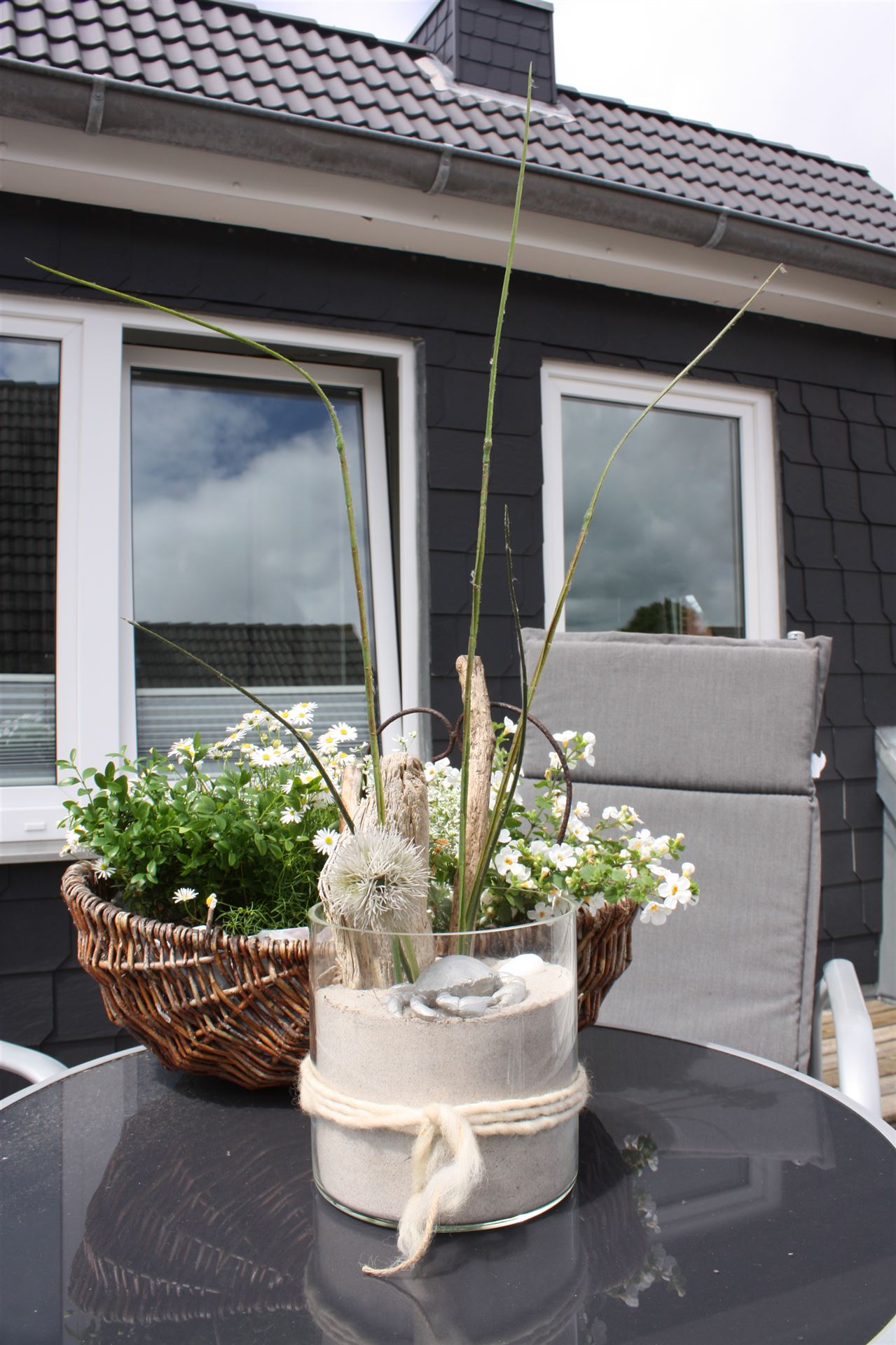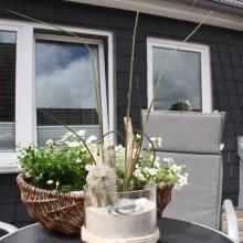Dachterrasse mit Gartenmöbeln und Strandkorb
