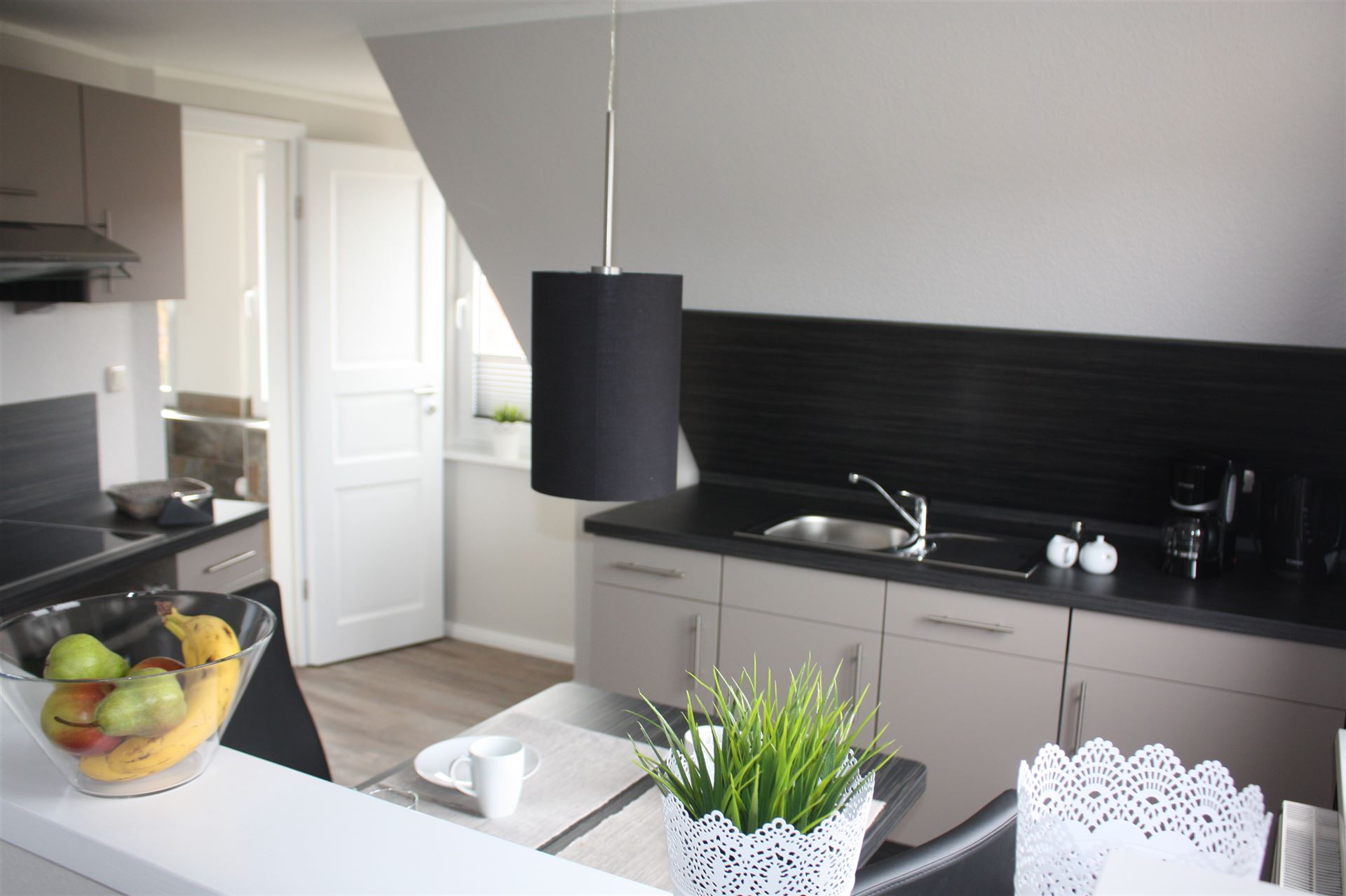 Küche mit Ceranfeld, Backofen und Geschirrspüler