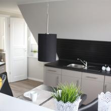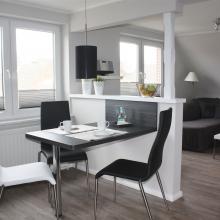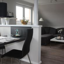 Im Interieur der Wohnung erwartet Sie Stil und modernes Design. Der behagliche Wohn-Ess- und Küchenbereich ist geschmackvoll und hochwertig eingerichtet und in dezenten Naturtönen gehalten. Ein zauberhafter Schlafraum und das moderne, helle Duschbad punkten durch ihr Ambiente.