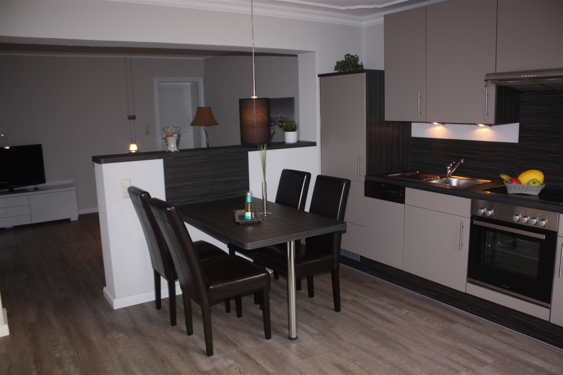 Küche mit Ceranfeld, Backofen und Geschirrspüler